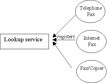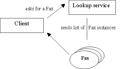 That's the vision behind Jini. But that vision goes much further. Not only can hardware devices talk to one another, but also software services. In a Jini world, you won't care whether how a device works, or whether it is software or hardware based. An Internet based fax service will act as a fax, as will a hardware device. You'll just look for a fax service, without worrying how the service is implemented. How does it all work?In today's hardware and software environments, installing devices can be tough. If you're lucky enough, your computer will detect a new piece of hardware, you'll load drivers for it, and after several minutes of installation your device will work. Probably. But how do you share the device over the network? That requires much more effort, and help from a network administrator. Jini promises to do away with all this, by providing an easier way to register services (either hardware or software) on a network. Jini is the glue that will bind a collection of different hardware, software, and operating systems together. Built on Java, and Sun's remote-method-invocation (RMI) technology, Jini is a powerful and effective mechanism for software to interact with services. There are several components to a Jini system, a subset of which is described below. Lookup serviceAs anyone who is familiar with distributed systems will know, it is essential that there is some way to obtain a list of available services. Usually, a service must register with a central lookup server, and then un-register when the service is no longer available. This means your service must know the location of the lookup server, and must terminate cleanly so that it can un-register. Of course, in an ideal world, this would be no problem. The lookup server would never change. Programs would never crash and leave old lookup service entries. In the real world, both these situations do occur, and cause problems. Jini solves this, by automatically finding available lookup services on the network. Services, when registering, receive a "lease" on their entry in a lookup service for a small period of time, and the "lease" must be renewed at regular intervals if the service is still available. This makes Jini systems self-healing; if either a lookup service or a device goes down, in time the Jini system will adapt and compensate for the loss. Services register with a lookup service The services : sharing hardware or software services on a networkJini makes the process of sharing services on a network far simpler. Through clever use of remote method invocation and the lookup service, client software can select an available service without caring about how it is implemented, or where it is located. These details are transparent to the client, through the use of proxy objects. Let's look at a simple scenario, to demonstrate how clients interact