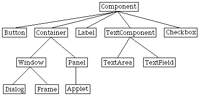 The use of the term "message" here is deliberate. Messages, as you saw in the previous section, are sent to objects. In fact, Java GUI components are implemented as objects. Java includes many predefined classes that represent various types of GUI components. Some of these classes are subclasses of others. Here is a diagram showing some of these classes and their relationships: