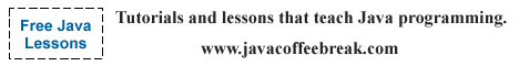 <a href="http://www.javacoffeebreak.com/"><img alt="learn java for FREE" border=0 src="http://www.javacoffeebreak.com/banners/javatopic.gif"></a>
